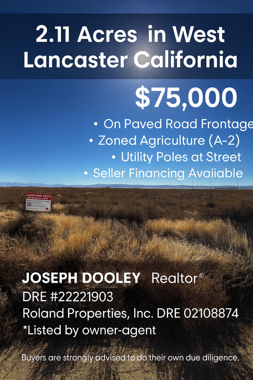 2.5 acres on 89th St W & Ave A in West Lancaster — open desert views, flat terrain, and easy paved road access. Perfect for off-grid living, investment, or future development.
